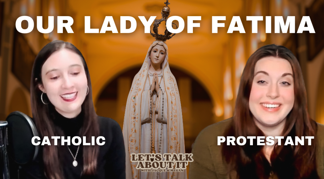 In this episode, we discuss the Marian Apparition “Our Lady of Fátima” which occurred in Portugal in 1917 from Catholic and Protestant perspectives. // Our podcast was born from our friendship. We are two people with very different beliefs, yet a shared desire to have understanding and unity! We love to have good natured “Catholic …